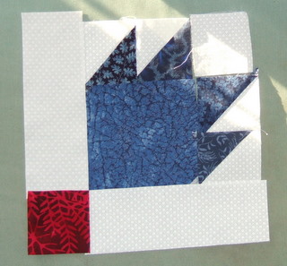 My pieces weren’t matching up and I couldn’t figure it out. I thought I must be taking larger seam allowances, or just totally screwed up in the head with my math skills (both perfectly logical — captain!). Alas, today I figured it out the the .pdf version of the pattern is smaller than the Visio file. Man! I thought I had something there! Now I have to find a solution so my patterns will be as I draw them. But at any rate, here’s my first block. It’s going to be beautiful when finished and I can’t wait for the 15th.