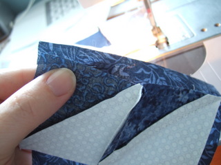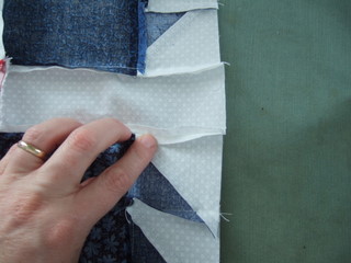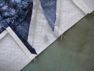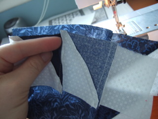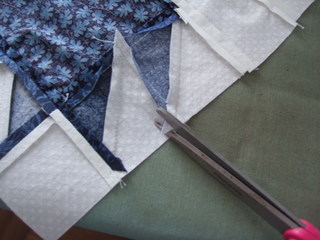 Here’s a triangle I forgot to trim. These little triangles just get snipped off as you work. Snip them flush to the seam allowance. Doing so reduces bulk and having them show through to the top of your quilt.