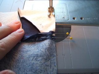 When you get to the pins take them out one at a time before sewing over them. The world won’t come to an end if you do, but be careful as you could break your sewing needle if you hit it. Try to get them out before the feed dog grabs them.