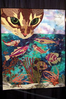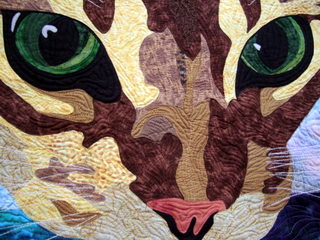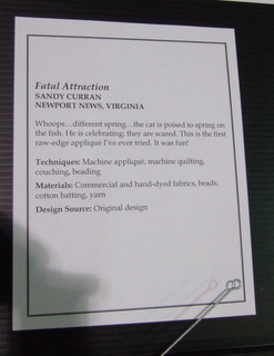You really couldn’t miss these beautiful quilts. From a distance their compositions just drew you in closer. First up is the cat quilt by Sandy Curran of Newport News, Virginia titled Fatal Attraction