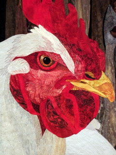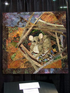 Upon entering the convention hall you are immediately drawn into the gallery of quilts on display. There were several exhibitions and competitions to see all the quilts. Every size imaginable and every type of genre was on display. For some reason I seamed to be drawn to several quilts that had animals as part of their theme. A cat, a chicken and a rat.