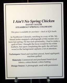 Then there was this beautiful Chicken that won Best of Show by David Taylor of Steamboat Springs, Colorado titled I Ain’t No Spring Chicken. Looks like a painting.