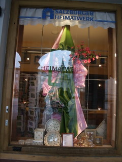 “Catee, here is da stoffe shop” my gracious host has pulled me over to the corner to look inside the fabric shop in Salzberg. “I am sorry it iz closed today”.
