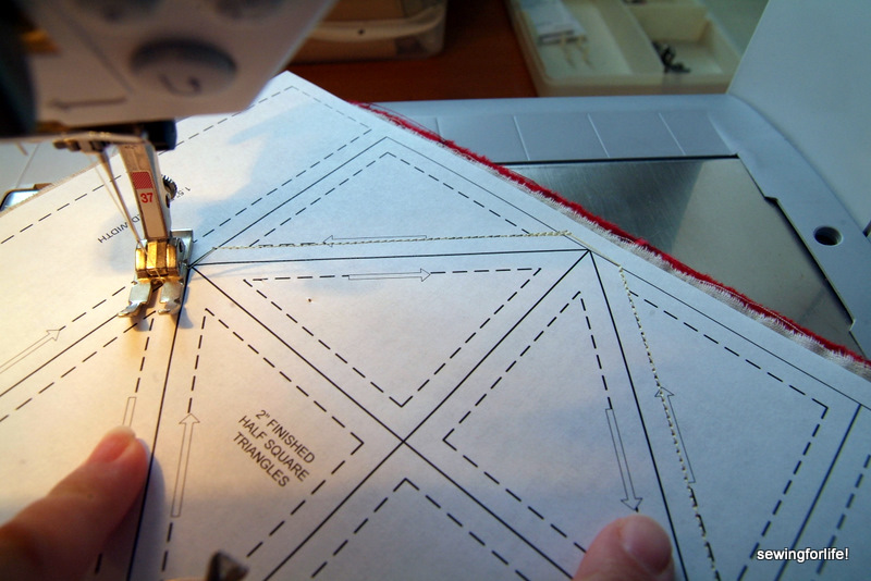 It works perfect for this. This is completely different than Bonnie’s technique though. What I am doing is using 2 half square triangles instead of a rectangle with two corner squares sewn on the diagonal like Bonnie’s. The end effect will be the same when you look at the quilt and since I can use the template…even better.