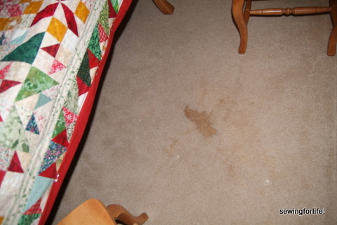 Thankfully the coffee spilled on the carpet and not the quilt! It is about the only time I will actually praise someone above for a huge spot on my carpet!!! Hilarious I know.