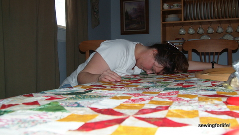 9. I’ve learned to be persistent. I really miss the 2-hour t-shirt! Oh boy. I’m starting to get antsy for sewing some clothes! I miss the instant gratification (comparitively speaking, what with a quilt taking 2-3 months!). That’s okay. I’m really going to stick to my plan of making Jan-Feb-Mar dedicated to quilting here at Sewing For Life! I can stick it out for another month. Just think. I’m almost done with this very large quilt and I can really see finishing a work in progress piece too.