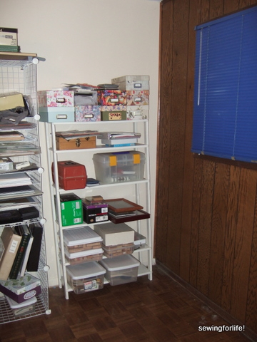 Anyway…moving on. The rest of this stuff is a collection of rubber stamps, art, and scrap booking supplies. For a long time I was into rubber stamps and making cards. Still do on occasion but not as much as I used to. I don’t think I can throw this stuff out just yet although I might consider selling the darkroom equipment and supplies. I picked it all up (the darkroom) on the cheap so I could probably still get my hundred or so bucks out of it yet. The rubber stamps, I don’t know. I still get enjoyment out of them. So this room will have to have a place in it for the art, as well as the sewing.