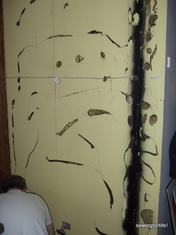 This is another section of wall that had paneling applied to it.  After removal we could see that something was really crazy about the people that owned this house before us.