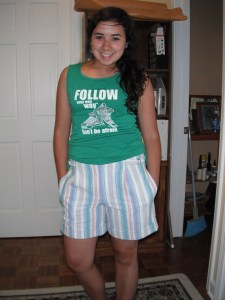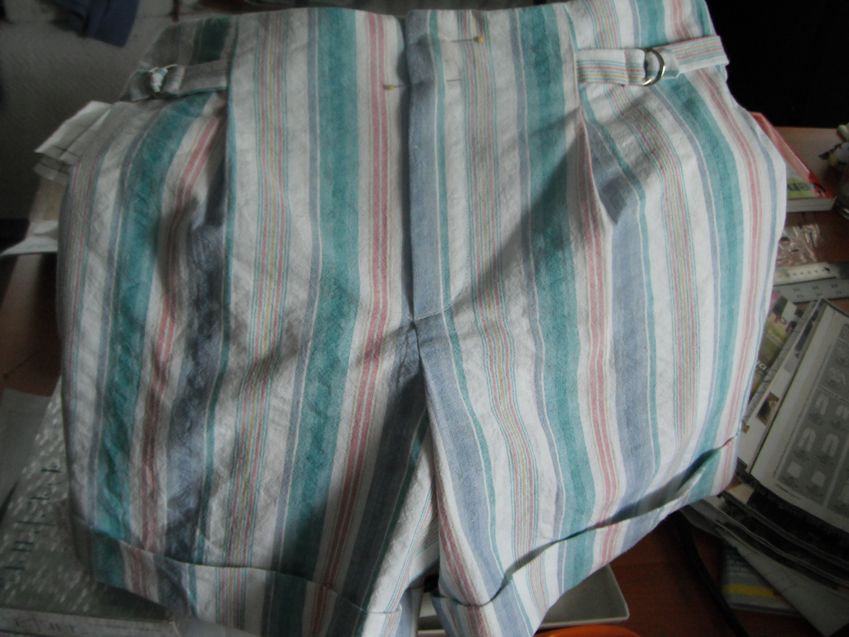 | The shorts are finished! And it took us a little bit to get them to this point. A not so funny thing happened when Ale came back from her camping trip and tried them on. After going into the bathroom to give it a try I heard “oh no!!!”. What? What? That is not something you want to hear! My first thought was they were too small and when she showed me I completely thought that was the case. But really…with most styles these days the waist is worn so much lower than the actual waist that it then dawned on me “of course! the waist doesn’t fit because she doesn’t want to wear them at the actual waist!”. Long story short, we took out about 2 inches throughout the seams (risking serious seam split) and then I added on a couple of inserts to the waistband facing pieces. She likes them and she’s putting them in her suitcase to take on her sightseeing trip… It’s a good thing! |