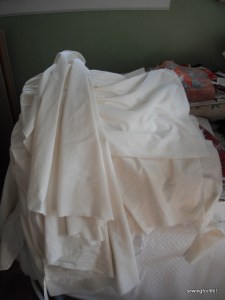 It starts with a bag of muslin, leftovers from various projects over the years. Some dating back to the muslin I made for my sister’s wedding dress in 1993. Odds and ends of various width and lengths.