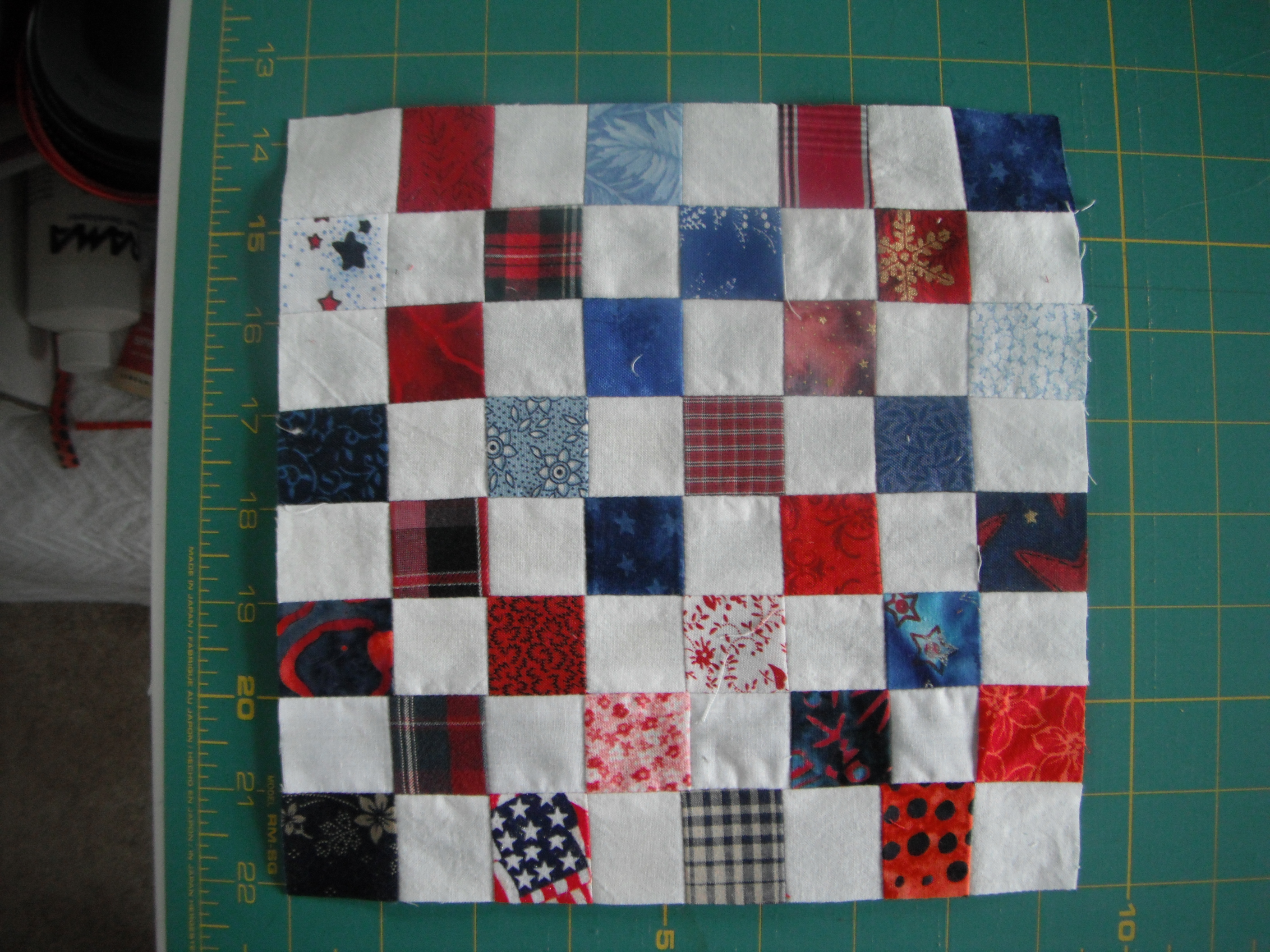 And with some of the 1-1/2″ strips I cut…because you just never know when you’ll need a postage stamp…figured I’d try out putting a few of these together…