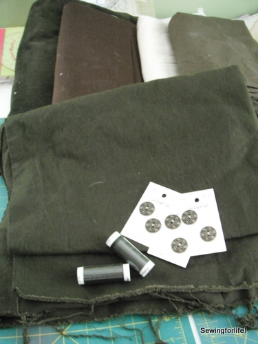 For the fabric, I have several to choose from. I have a corduroy, a few non-stretch twills and I just found this last one at Hancock which is a stretch cotton twill…and look…it’s in a dark olive green color!!!!