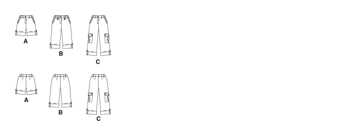 This design has a flat front, one dart in the back, slant front pockets, faced waist finish, zipper fly with extension, large size cargo pockets with flaps and tabs to roll up the cuffs. It’s a fairly straightforward and relatively simplistic pant design. The waist facing is nearly the same as the Burda Shorts I made earlier this summer for Ale.