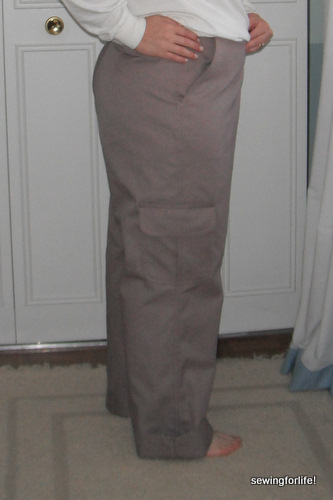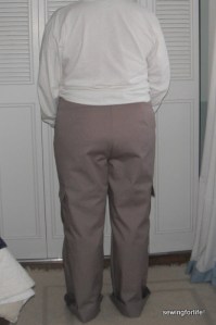 I did not sew on the back pocket yet, which I need to do, but I wanted to have the pants sewn up first so I could locate a proper placement. It’s really difficult to do when the fabric is flat.