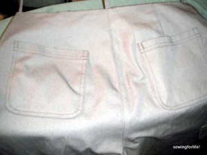I looked at pants I had, I looked at patterns in my library and even some of Jim’s pants but ultimately it was trial and error. I would pin them, try on the pants, look in the mirror, repeat.