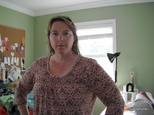 This fabric is really quite see through and I debated if I should line it with a sheer knit. Then I thought that not because it would make it too bulky for the drape. If needed I can always wear a silky under tank/camisole underneath it for better coverage. So far it is turning out…but I know just as much as you do that these cheapy fabrics may not wear as well after a few washings.