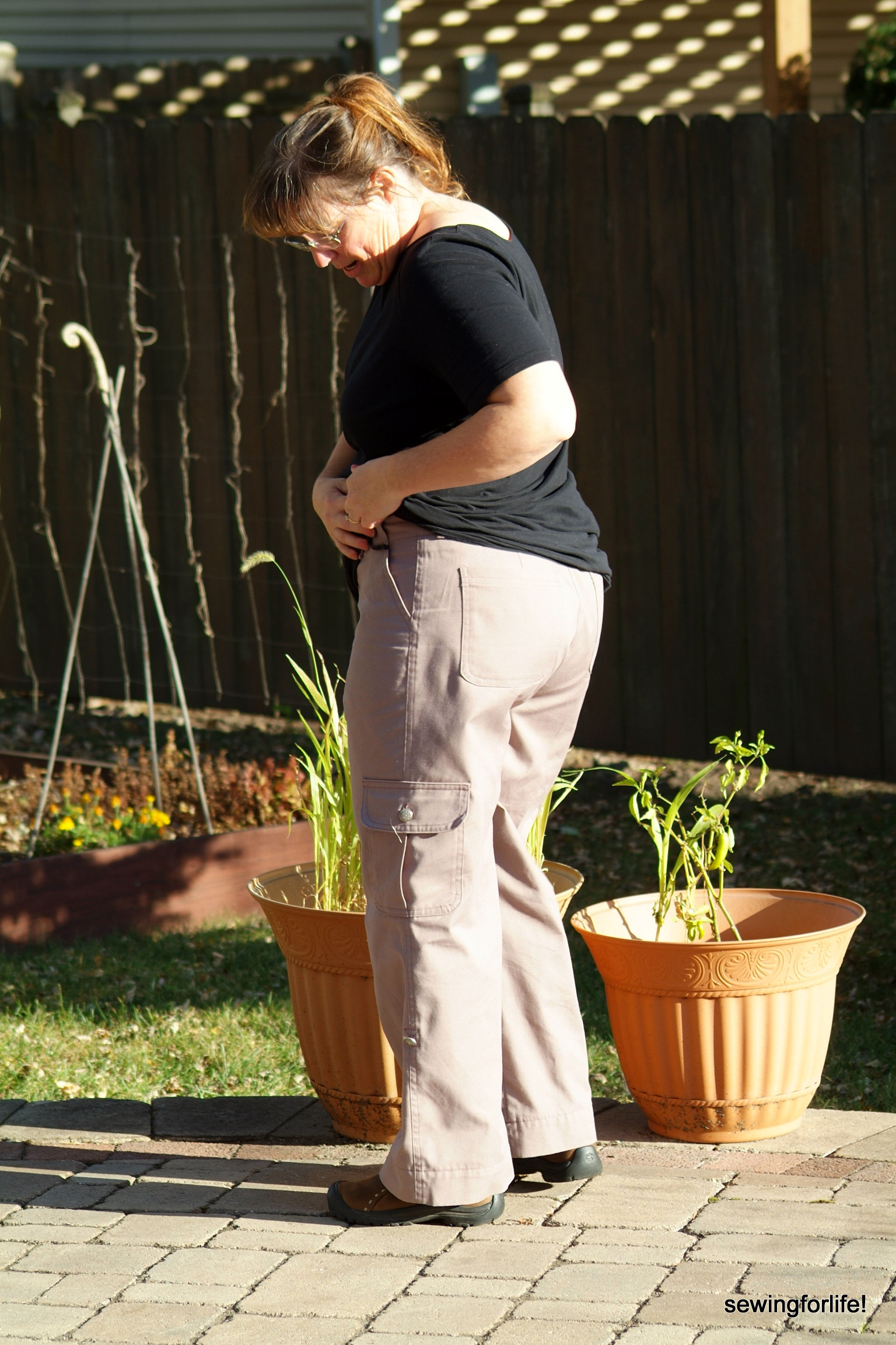But in case you want to know I think these turned out a little big on me around the waist. I don’t know what happened…could PMS be really this noticeable? I’m wondering about that and thinking about a way to insert some elastic into the sides to take in some of the excess.