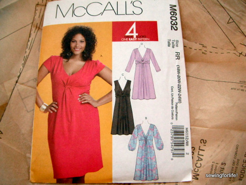 I dropped by Lane Bryant and tried on some things but after 7 outfits NOTHING was looking good. That store is a hit or miss for me unfortunately. So I looked through my patterns here and pulled out McCalls M6032. I think there is a possibility that this will sew up nicely and flattering (crossing fingers).