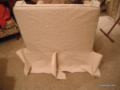The skirt to the slipcover was fitted using the skirt pieces I had cut out from the Butterick Pattern. I had to fudge a little but it all worked out.
