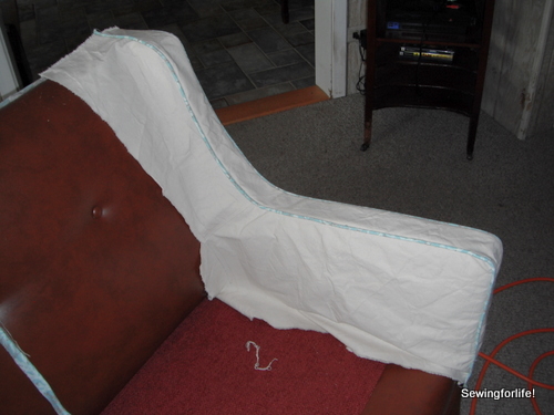 The couch project has been on a long hiatus but I actually sat down finally at the sewing machine last night and sewed up the right arm!