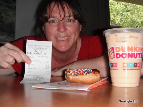 Transaction: At my local Dunkin Donuts store I walked up to the counter and asked if they were participating in National Doughnut Day. But of course! Just purchase any coffee and pick out ANY doughnut of your choice! The best part about this was since it was after 3pm all coffee, hot or iced, are only .99c! Double Score! So I picked up a 16 ounce iced coffee and a chocolate sprinkle doughnut.