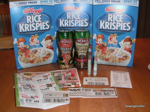 First was the Kellogg cereal. I buy the Rice Krispies for Rice Krispie treats and crunch bars. One box is about the amount for one batch of Rice Krispie treats. I used a $1.00 off three coupon so I needed to get three boxes in order to use the coupon. The sale was $1.99 per box.