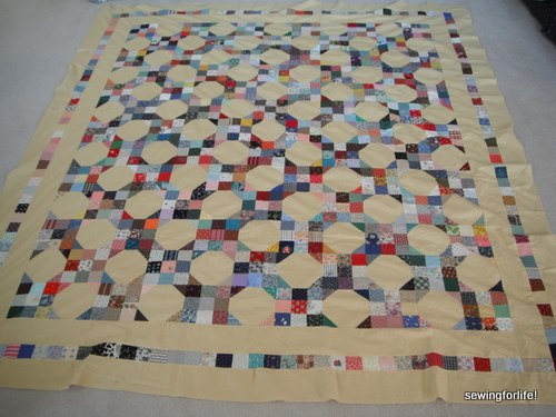 It’s scrappy and I liked the yellow. This is also a pattern that is one of my favorites. Look at these truly nutty fabrics that are in this!