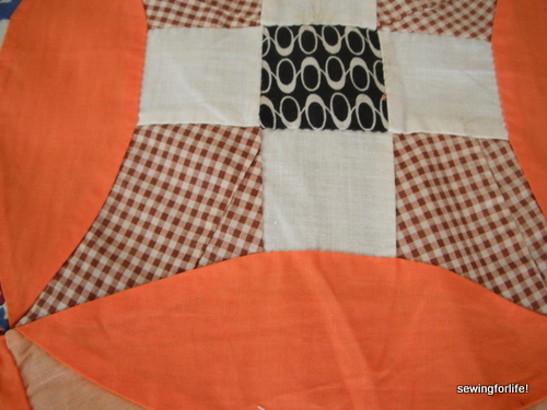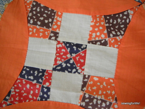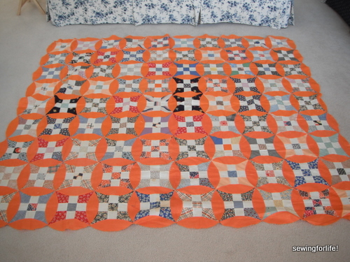 Then I bid on this other quilt top. A little smaller but another scrappy design. This one was pieced by hand and looks to my eyes to have been made in the late 30’s-late 40’s era. Not totally sure but the fabrics are dated and they have an aged feel and look. Love the Orange!