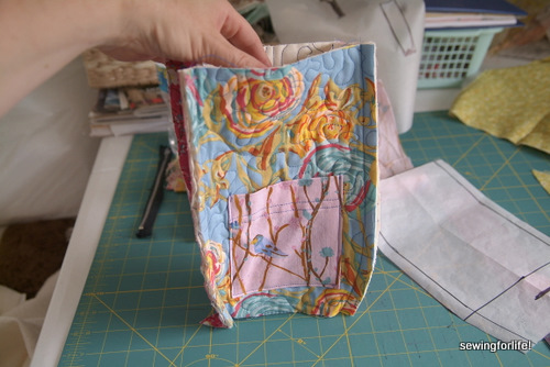Before I sew up the other side panel I was thinking about adding an outside pocket. I don’t want to think too much here, just add on a quickie patch pocket to see how it will work.