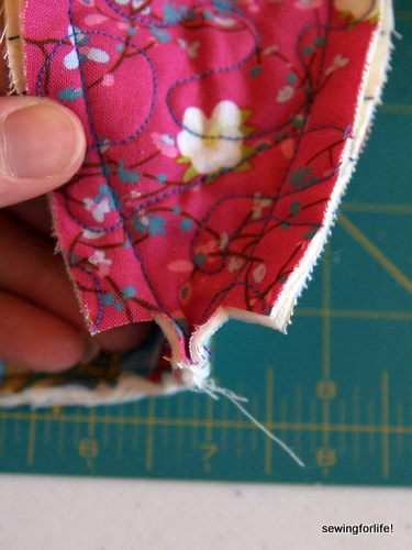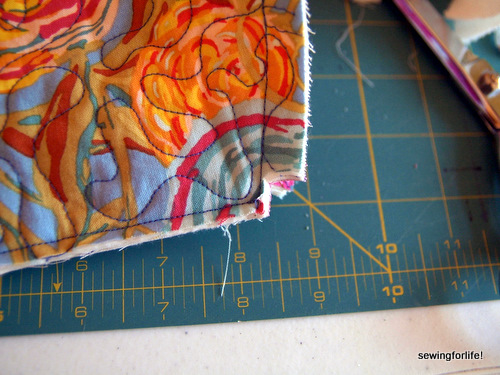Then I clipped out a little ‘postage stamp’ from the bottom side seam allowances. This will remove bulk for the next step.