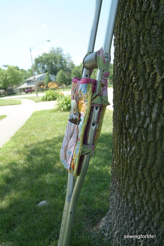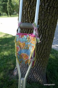 1. Love your choice of fabrics on your crutch bag! What a great idea too. I’ve seen many walker/wheelchair bags, but never anything for crutches. Nicely done.