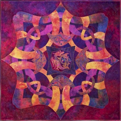 Here is one of Ricky Tims’ quilts (the Fire Dragon Rhapsody). Do you see that little binding accent? Look closely, I know, it’s subtle from far away on a big quilt.