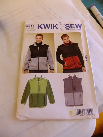 So some back story here, Jim and I were at Hancock Fabrics once last Fall and we had commented to each other after passing by the big tables of fleece that were lined up on display that making some fleece jackets might be a fun project to undertake sometime. I had even looked at some patterns and Jim even thought this Kwik Sew 3815 pattern would be just great.