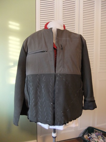 Jim tried on the jacket at this point and we noticed that this jacket is BIG! The sleeve length is way, way too long so we had to roll up the sleeves and they are really HUGE. He’s just swimming in them. No doubt I’ll probably have to trim those up, such a shame. Sometimes I just wonder about these pattern companies. Is the person this is made for 6 foot 5”?