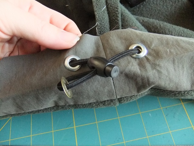 So that’s it for now. I need to go shopping to find some very thin ribbon or cord which will get threaded through the Cord Lock and attach to the jacket.