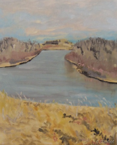 So….don’t laugh you all. For these next two paintings I went out to a local forest preserve park that is close to our home and did a few sketches. One of these paintings was done from life ‘en plein air’ and the other was painted in class and finished up here at home.
