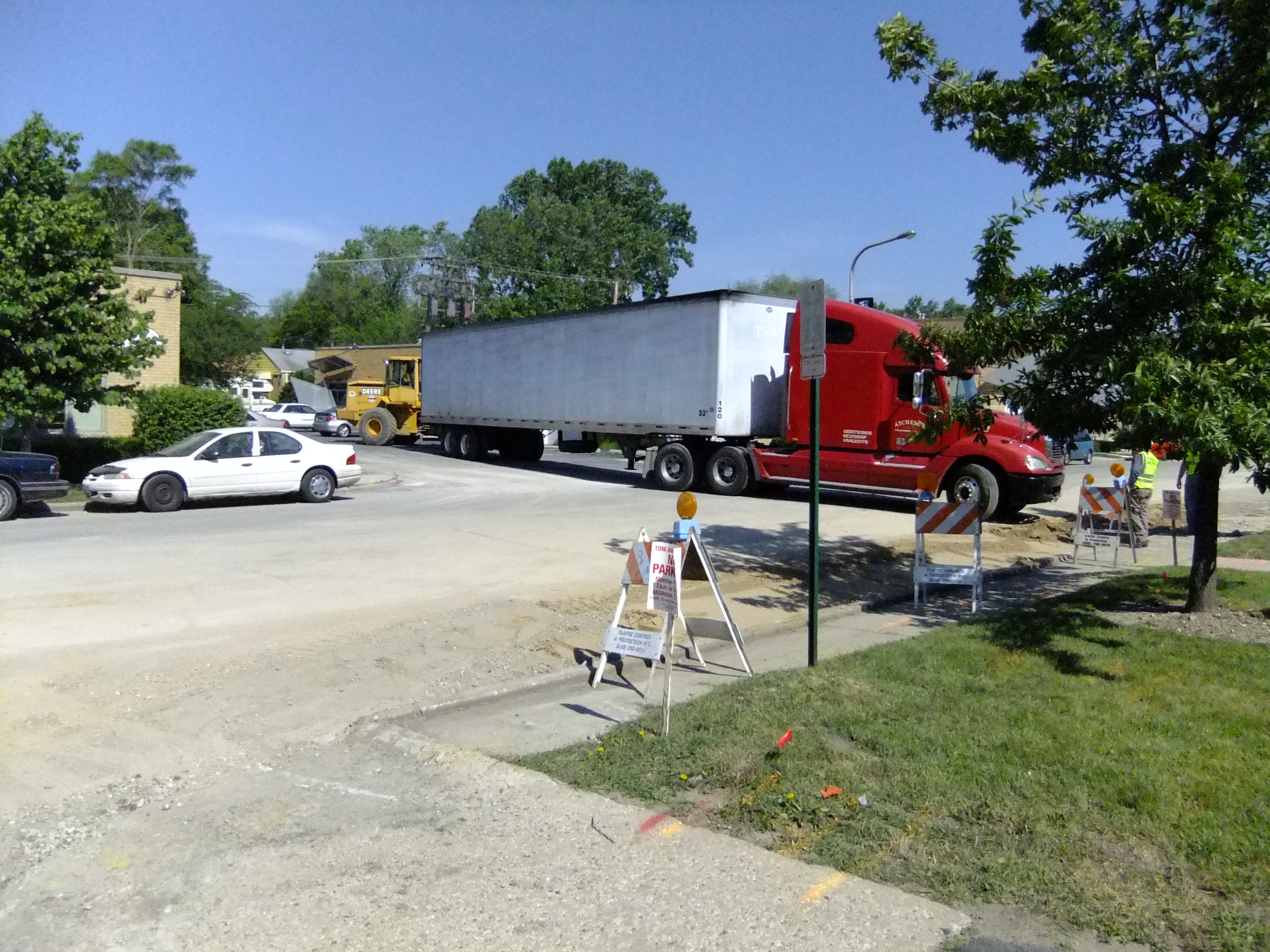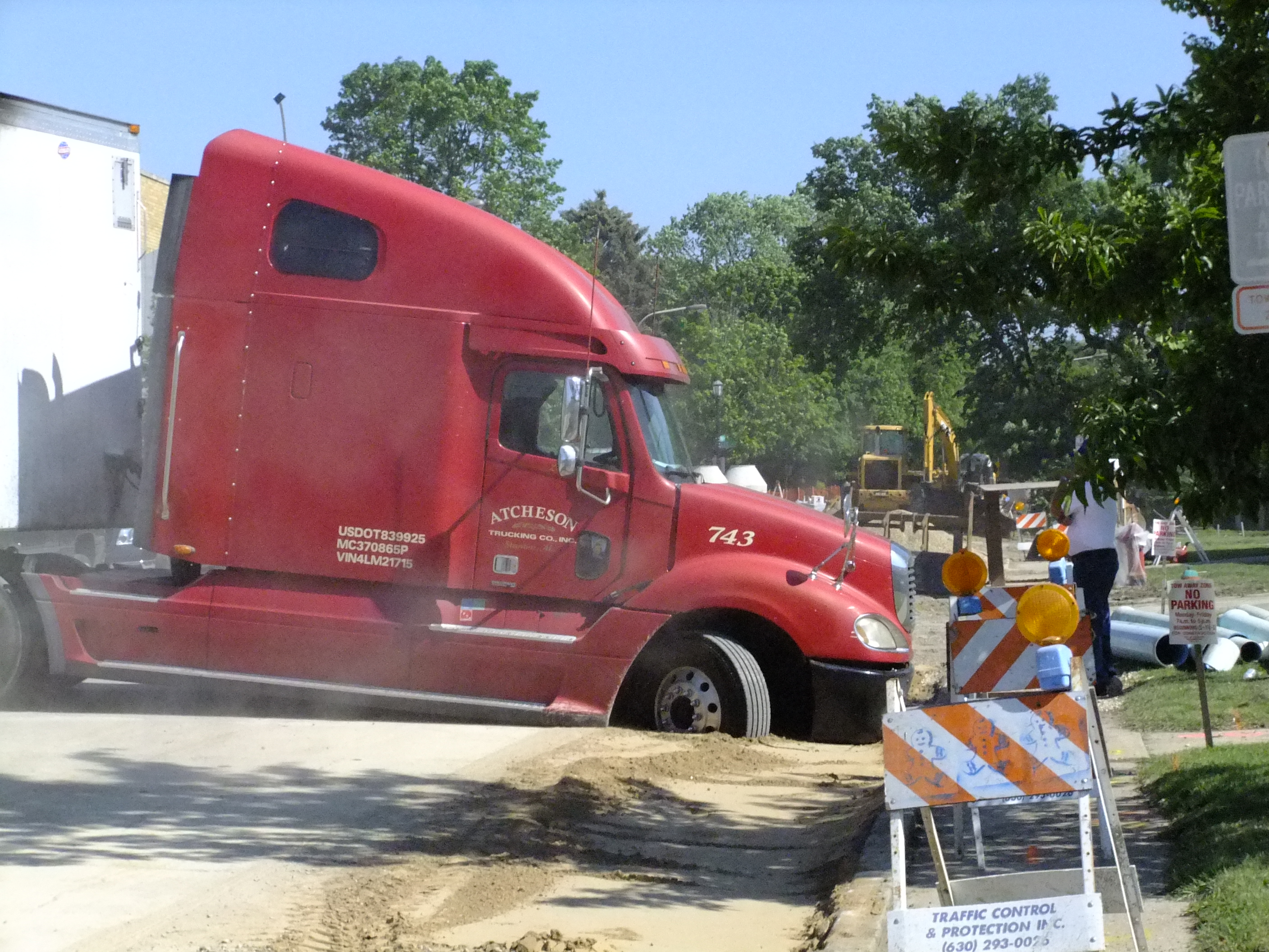 This was outside my place of employment last week. The city is replacing the water main and will eventually be replacing the street. Unfortunately, we still have to work and businesses still have to stay in business. We all felt a little sorry for this poor truck driver as I’m sure he had no idea he’d be falling into ‘quick sand’ where the construction crew had dug up an area and back filled it with sand.