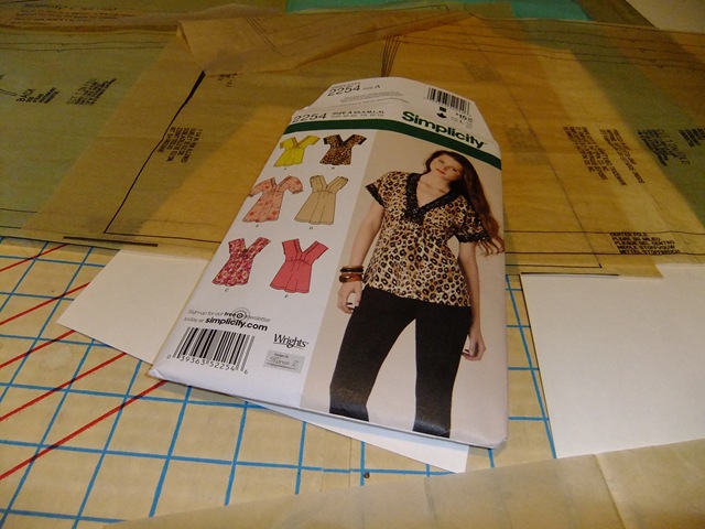 Then looking through my patterns I chose Simplicity pattern 2254 and a green woven cotton fabric from the stash to use as the trial sample. There was just enough (2 yards) of the fabric to cut out View A, so for lack of fabric, A it is!!!