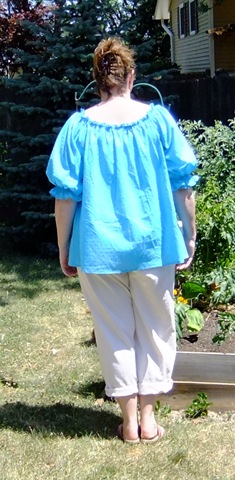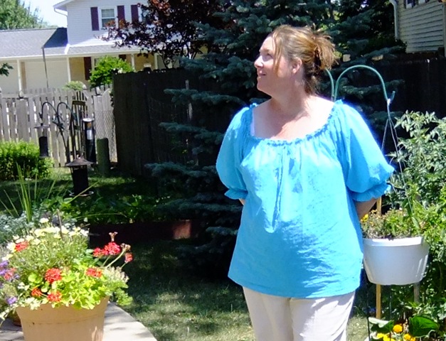 I’m not a frilly kind of gal, but I like this top. It looks cool and comfortable, and I’m wishing I had one on in this 100+ heat! Great tip for the neckline!