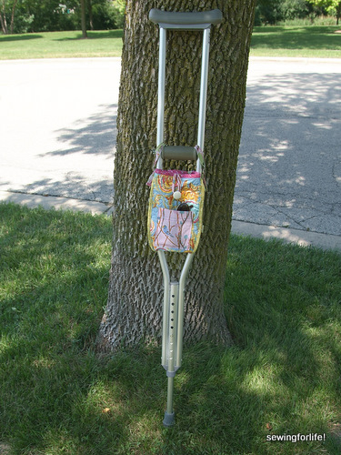 WOW! What an ingenious way to carry a purse when your hands are obviously occupied holding onto a pair of crutches. Absolutely marvelous! I’ll definitely keep this one in mind if ever I find myself on crutches. Thanks for the idea… and for sharing the pattern.