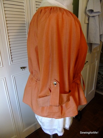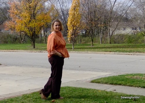 05-DSCF3453 02-DSCF3449 03-DSCF3451 04-DSCF3450 So next up is the Butterick 5612 top.  I’ve had this fabric and top lined up since September and finally finished it this weekend.07-DSCF3463 I made up a size XL exactly to the pattern specifications and the only change I made was the set of the buttons on the front tab.  I chose to place the three buttons close together in the bottom 2/3rd of the front tab.10-DSCF3466 The sleeve tabs must be a design after thought.  They just are goofy.  For one, they are too long and second they are rather wide compared to the width of the front band and the collar band.  I like the look of the rolled up sleeve so in the next edition if I do this pattern again the tab will need to get redrafted.