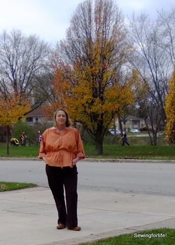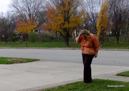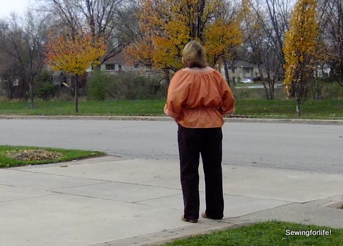 On the plus for this pattern, it is very comfortable.  The sizing is large and even thought I made an XL which should have been perfect I actually think it might be too big.  I can tell my bra straps are exposed on my shoulders.  The next size down might be just right.  I know, so goofy!!!