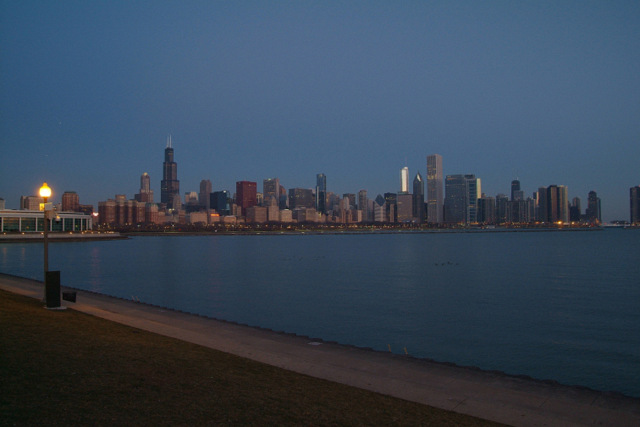 I have a few spots in mind, one being this one below, which is out along the Museum Campus drive looking back towards the city. Unfortunately for me, I ran right into Bears game security and parking authority! Slap to the head! Doh!