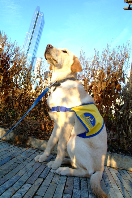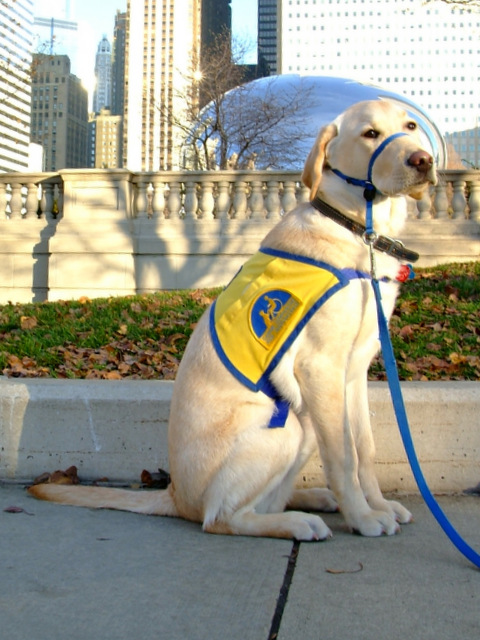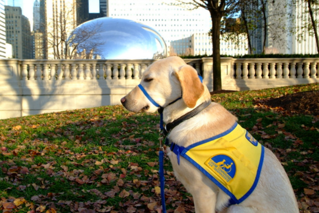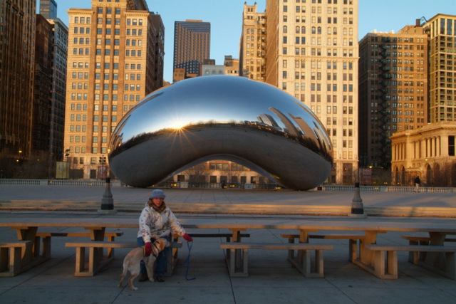 So I parked along Michigan Avenue and walked back towards Millennium Park and our world famous ‘BEAN’ or ‘Cloudgate‘ as it is called. Jamba is still young, and I probably would not have been asked to leave, but I decided to just ask the Security if Jamba could get up close to the Bean with me but they were hemming and hawing and ‘yawn’ I don’t knowing until the security guard finally agreed that because he didn’t know the rules on ‘dogs in training’ he’d let me just go up to the platform but stay behind the benches.