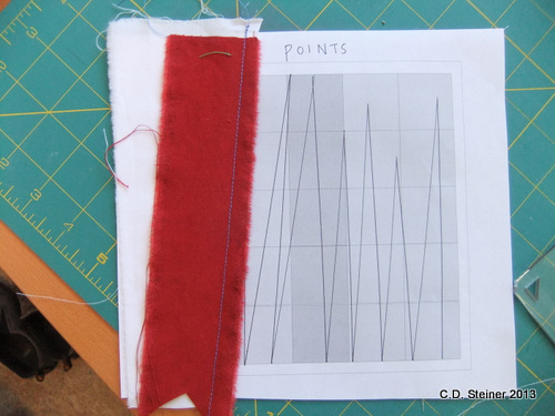 I worked left to right starting with some white muslin and working my points across the entire field…