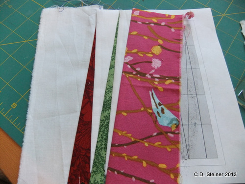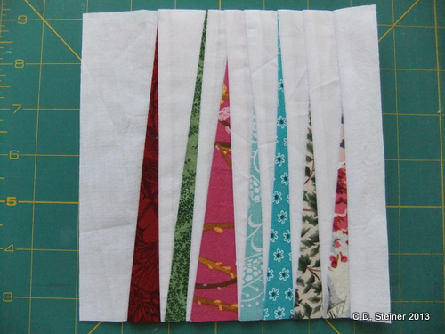 Sewing, then pressing, trimming, then sewing again until the entire block was covered. I trimmed to size and removed the paper.