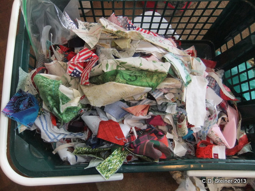 This is my crumb basket, the last resting place for all those little bits of fabric that I just can’t bear to throw away! I’m not sure it is actually possible to completely empty a crumb basket because there is ALWAYS something being tossed into it! But I try. I really do. Sometimes I’ll spend DAYS just piecing little bits together.