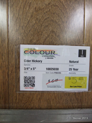 I also went back to Lumber Liquidators to see if anything else might work. Here is another Hickory, this one by Casa de Colour but is a smooth floor and the boards are nice and wide…