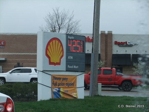 So yesterday, I’m driving along minding my own business when cop cars come flying out of nowhere and pull into this Shell station!  Ooh!  Ooh!  What’s going on?  A robbery?