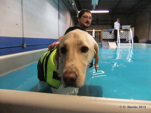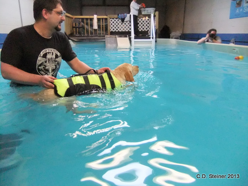 For his first time in the water, not that he needed it, but in order to grab him and direct him we put the life vest on. He splashed around a little unsure of what this whole water thing was all about. But instinct took over and before we knew it he was chasing after toys in the water. A natural.